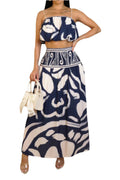 Make waves in the Island Muse Two-Piece Skirt Set, where tropical vibes meet timeless elegance. Featuring a breezy ruffle crop top with delicate spaghetti straps and a high-waisted maxi skirt adorned with a bold tribal print, this set is perfect for summer brunches, beach getaways, or sunset dates. Designed to move with grace and flatter every curve, it’s your ultimate warm-weather statement look.