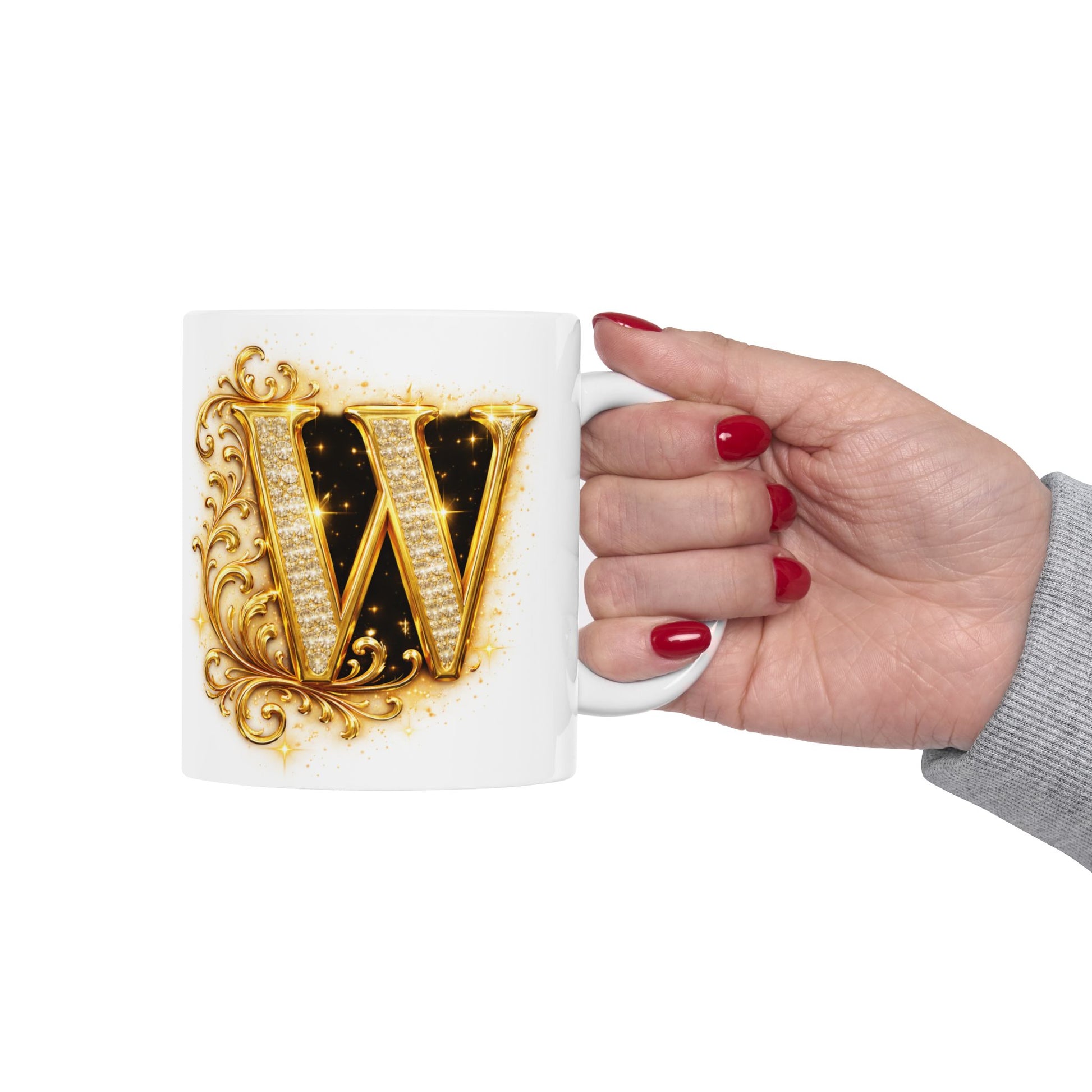 Gold Ornate Letter W Mug | Ceramic Monogram Mug